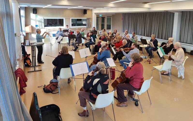 Het Huismuziekorkest Haarlem repeteert in zaal GSV, Fr.Schubertlaan 37 in Heemstede.